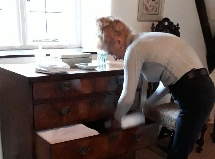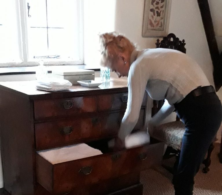 Fitted carpets are vacuumed thoroughly but rugs (depending on their size) will be taken outside and shaken or beaten well to remove all traces of dust from not only the rug, but also the rest of the house; delicate light fittings and ornate picture frames are dusted with soft long-bristled brushes to remove dust without damaging the item.